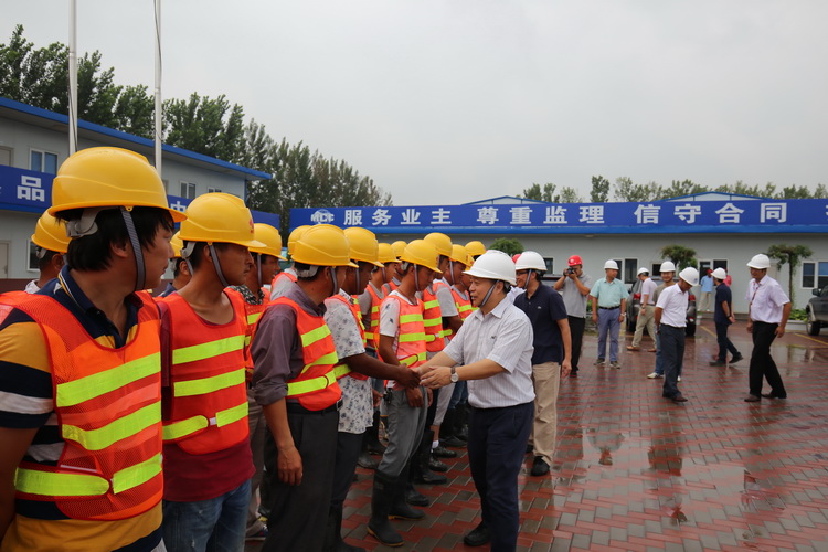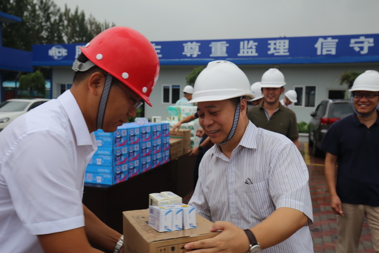 中心党委书记魏保志对冒着酷暑坚守一线的建设方、承建方、监理方的员工表示衷心感谢,亲手将防暑降温及日用品发放到员工手中,并详细询问了一线员工的生活情况,叮嘱他们合理安排作息时间,保证身体健康。同时,要求各方做好防暑降温预案,落实安全文明施工,体现项目人文关怀,在保证安全与质量的前提下,实现目标工期,建设精品工程。